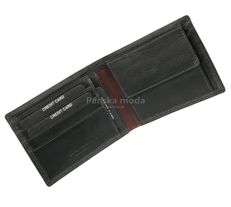 Peňaženka prehľadného typu poskytuje priestor pre bankovky (do 1000 €), 3 karty a doklady nového typu.